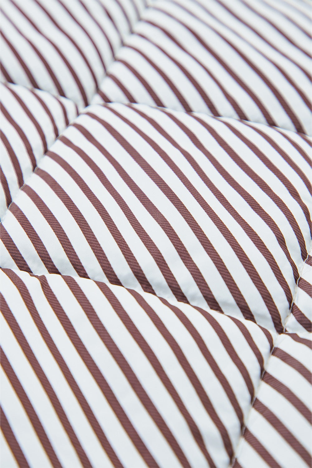 Layer up in style with the Cocoa Stripe Quilted Vest. This lightweight puffer vest features vertical chocolate-and-cream pinstripes with a uniquely stitched quilted pattern for a flattering, cozy fit. Designed with snap-button closure, pockets, and rich brown trim, it’s the perfect neutral layering piece for winter errands, holiday outings, or everyday casual looks. A chic and versatile addition to your Winter Blush Collection.